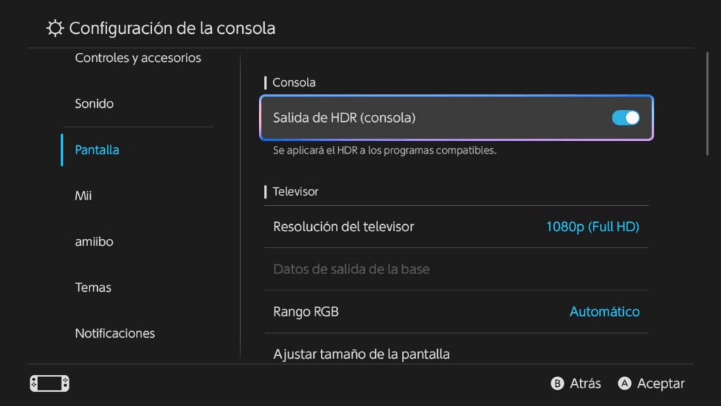 - “Salida HDR” fue renombrado a “Salida HDR de la Pantalla del Sistema”.
